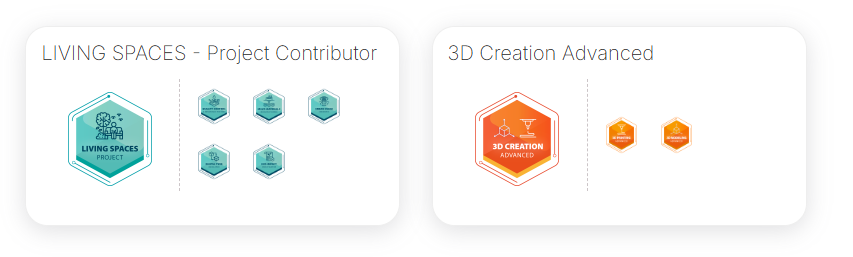 The role of a milestone badge in the badge system is determined by the issuer. It can be the final step in a pathway, it can express access to a “higher level”, or it can be a compilation or a summary badge.