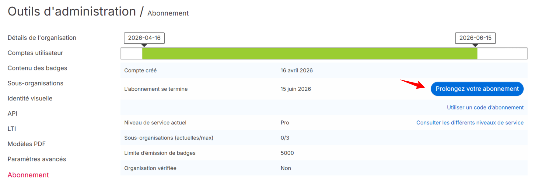 Si vous avez déjà un compte Open Badge Factory, un utilisateur avec un rôle administrateur pourra commander l'abonnement en suivant ces étapes :