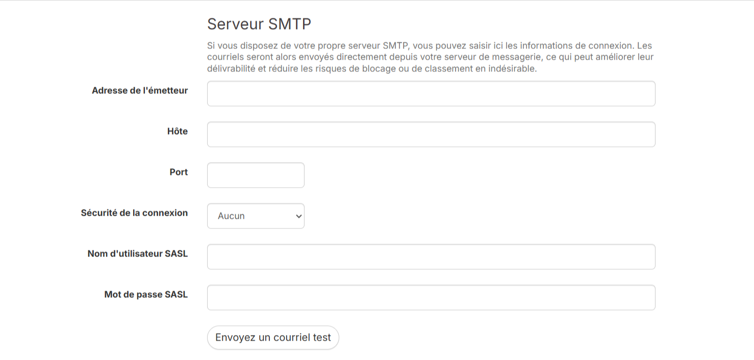 Si vous souhaitez utiliser votre propre serveur SMTP pour les messages d'émission de badges, définissez ici les détails de la connexion.