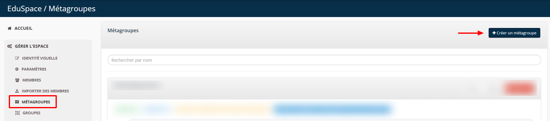 Sélectionnez les groupes que vous souhaitez ajouter à votre métagroupe. Si les groupes n'existent pas encore, vous devez les créer avant de configurer le métagroupe. Ensuite, allez dans Métagroupes et utilisez le bouton Créer un métagroupe (voir la capture d'écran ci-dessous).